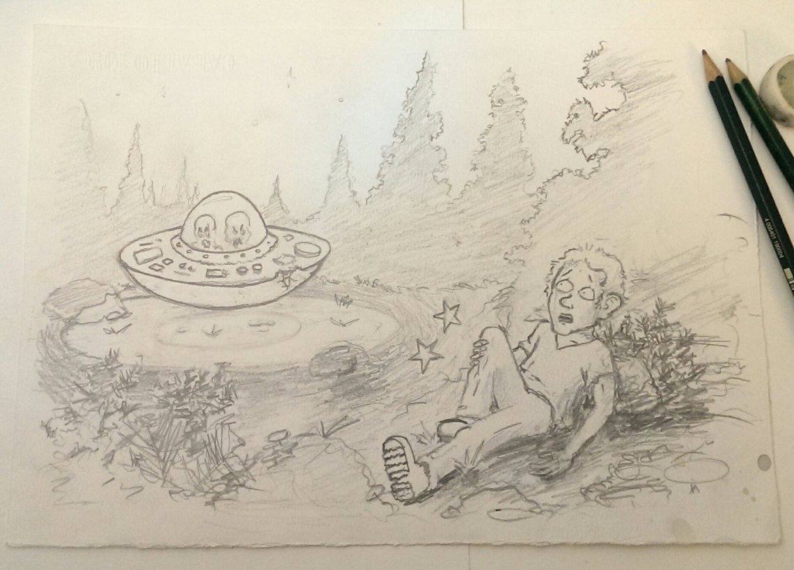 My post UFO Roadkill is based on an idea I had for a comic during my years as a caveman, created in the light of candles as all my stuff was back then. The comic never became anything more than a storyboard, but I still wanted to make something out of the idea. From cave art to blog post, who would have guessed.