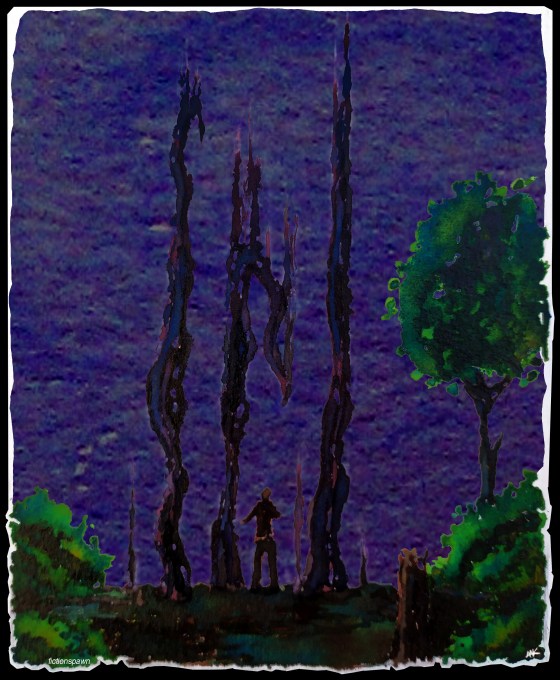 The ground felt moist, almost wet, giving in when he stepped. Something came flowing up from the dirt. Like smoke, yet solid. Darker than the darkness itself….